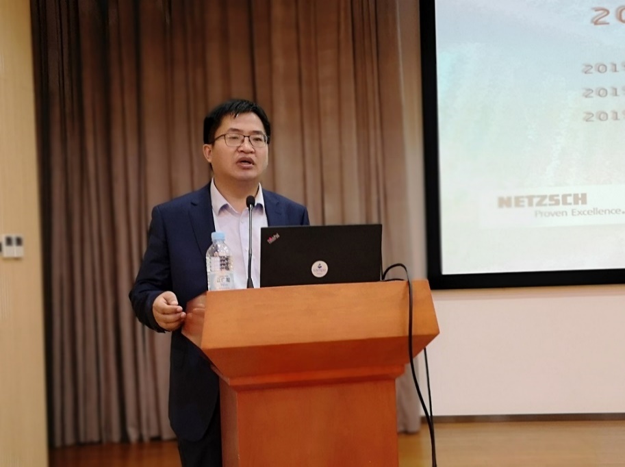 复合材料协同创新中心常务副主任孙宝忠教授致欢迎词。技术分享部分,中国航发北京航空材料研究院的何鲁林研究员从树脂基复合材料发展概况、相关材料、成型技术、质量控制、配套技术及其在军民品上的应用几个方面系统地介绍了复合材料的基本知识,两个小时的内容干货满满,让同学们受益匪浅。天氏欧森的黄安超经理从公司的起源介绍到了各种材料的测试标准,还和现场同学互动提问,会场气氛热烈。美国物理声学公司(PAC)的王巍、付尧两位高级工程师分别就超声波扫描和声发射在复合材料性能测试中的应用做了主题报告,还在茶歇时为与会师生们现场演示了测试设备,让大家能得到更直观清晰地认识与了解。德国耐驰公司的曾智强总监从差示扫描量热法讲到动力学公式,再到材料的固化行为分析和数据拟合,最后建立模型并对材料的固化性能进行预测,全面介绍了复合材料的热分析方法与应用。波客公司的王招经理以实际产品为例,讲述了基于Fibersim的复合材料数字化设计与工艺,将专业工程软件用于实践,用专业的工具解决专业的问题。科盛公司的牛立国总监讲解了如何应用Moldex3D软件对复合材料各种成型工艺进行仿真,并介绍了公司与高校合作的人才培养模式,欢迎同学们参加培训,成为复合材料行业的优秀储备人才。