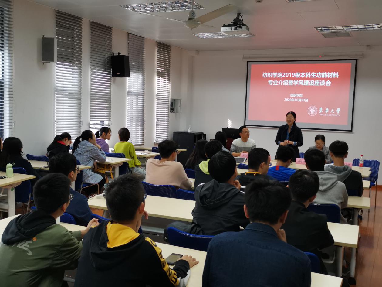 为进一步增强学生对功能材料专业的认知了解和学习规划,更好推进“功能材料-生物医用纺织材料与技术方向”专业建设和本科人才培养,10月20日和23日,ok138太阳集团中国官方网站面向2019级功能材料专业全体本科生分别举办经验交流分享会、专业介绍暨学风建设座谈会。高技术纺织品系教授王璐、高晶、副教授关国平等专业导师,本科、研究生高年级优秀学生代表以及2019级功能材料专业全体本科生参加。分享会和座谈会由功能材料专业辅导员张强主持。